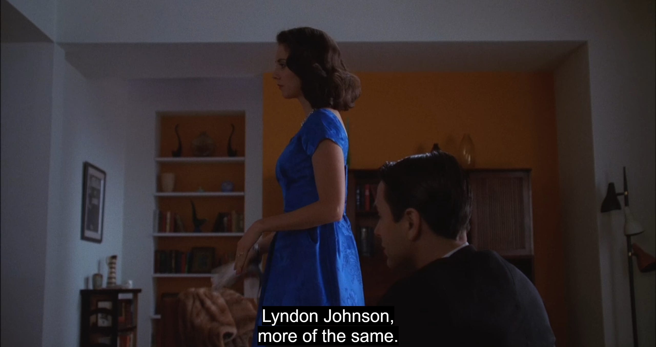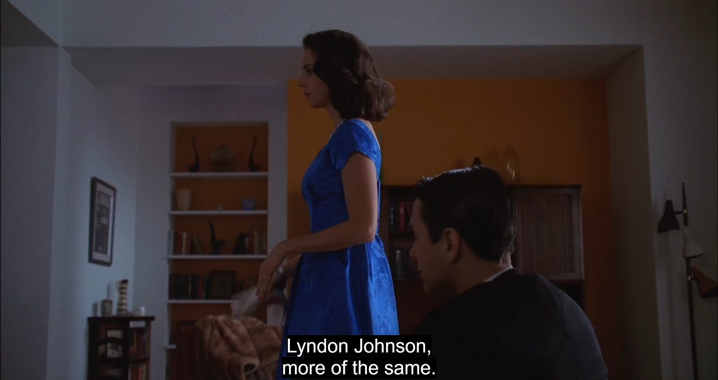Season 4 picks up a few weeks after the 1964 election in which Democratic President Lyndon Johnson won election in a landslide victory (486 electoral) against Republican Arizona senator Barry Goldwater. I don’t believe there was ever a consideration that the show may cover this election as it would have proven uninteresting compared to the close race of 1960. There was a solid belief among Sterling Cooper’s staff that Nixon could pull off the election but no one at SCDP would have gone into November 1964 expecting an upset from Goldwater.